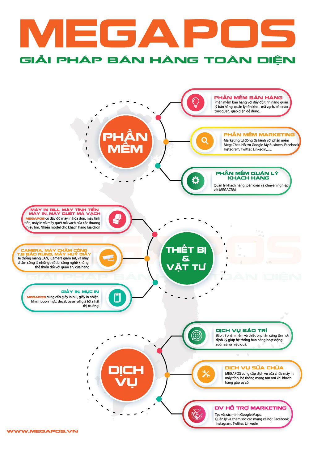 MEGAPOS chuyên cung cấp giải pháp bán hàng và các thiết bị bán hàng như máy in bill, máy in decal, máy tính tiền, giấy in bill. Chúng tôi còn có phần mềm bán hàng miễn phí và phần mềm Marketing đa kênh Megachat.