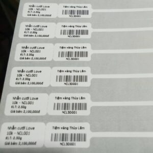 - Giấy decal in tem vàng có độ bám dính cao, được thiết riêng cho ngành trang sức, vàng bạc.
