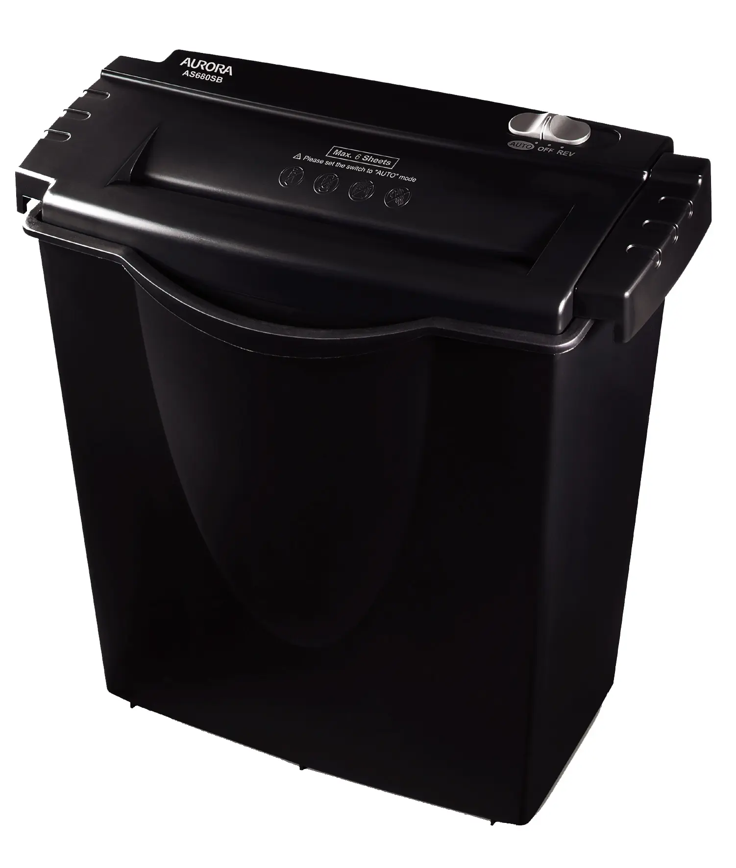 AS680SB với Thùng 10 lít cung cấp khả năng lưu trữ tốt cho chất thải vụn và có 3 khe xem để hiển thị khi chất thải sắp đầy. AS680SB cũng có một lỗ cắt nhiệt để ngăn máy hủy quá nóng và một cài đặt ngược lại để xóa Kẹt giấy.