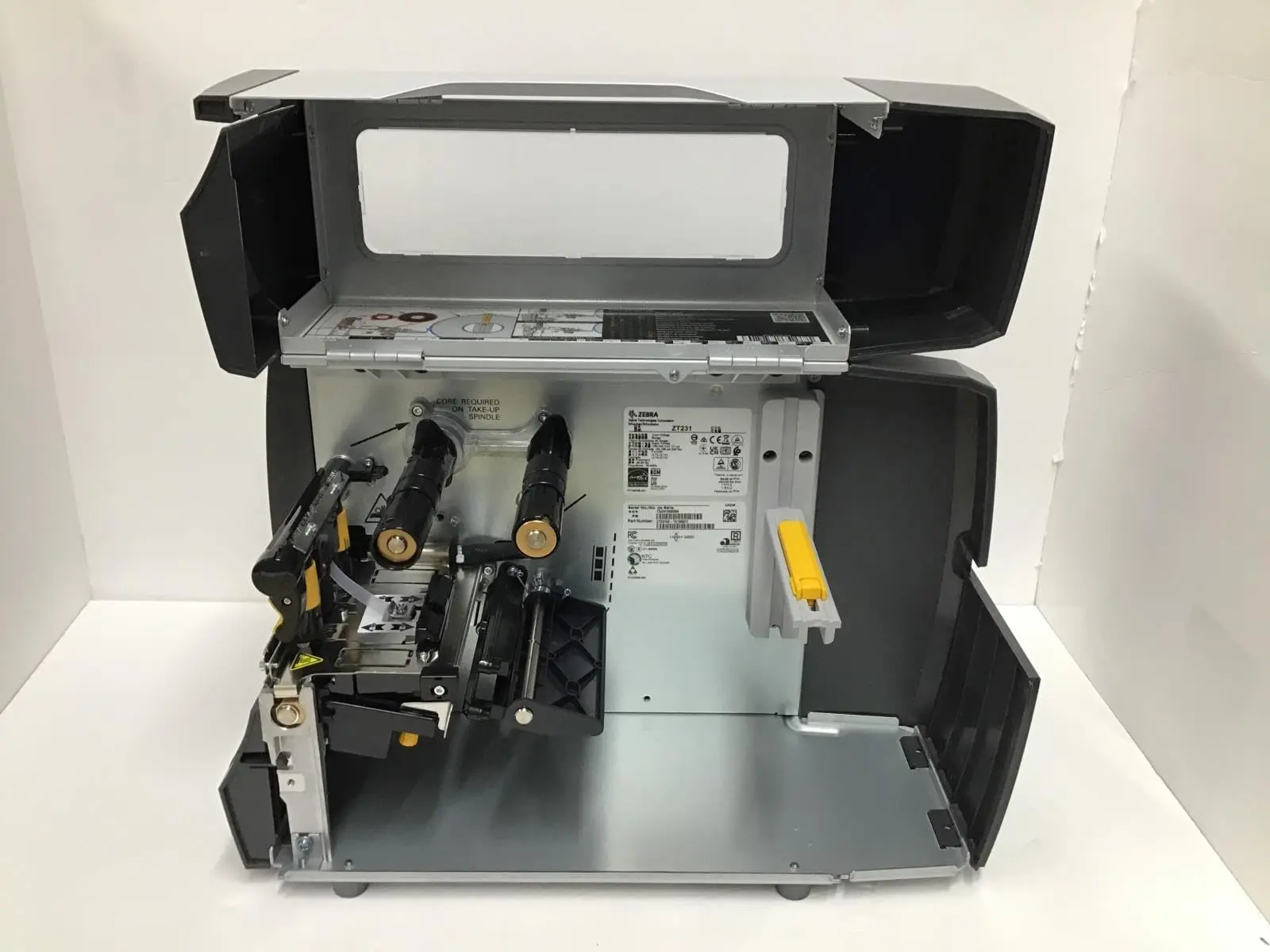 Máy in mã vạch Zebra ZT231 thiết kế với khung hoàn toàn bằng kim loại mang lại độ cứng cáp, bền chắc cao, thích hợp vận hành trong môi trường công nghiệp. Cửa nắp của máy ZT231 dễ dàng đóng mở dễ dàng lắp đặt, kể cả nơi có không gian hẹp. Ngoài ra, máy in mã vạch Zebra ZT231 có cửa sổ bên hông máy bằng nhựa cứng, mắt thường có thể quan sát được cuộn giấy tem decal, ruy băng mực bên trong máy.