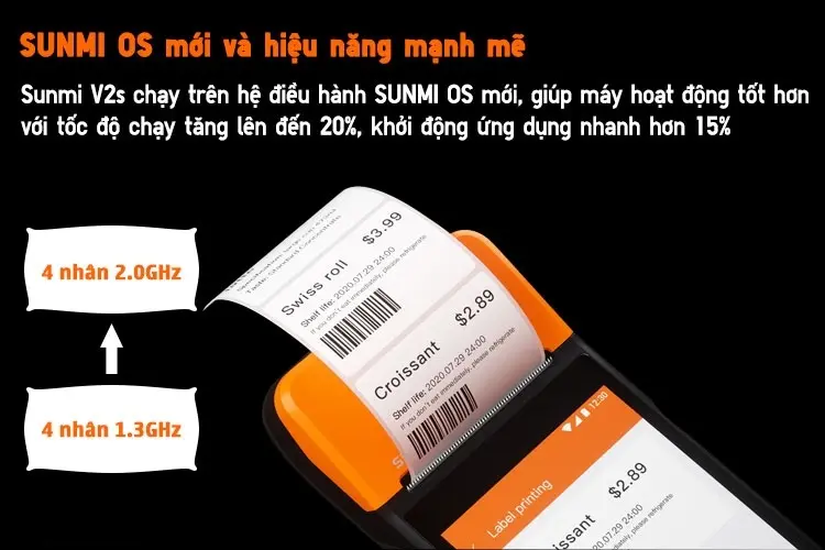SUNMI OS mới và hiệu năng mạnh mẽ.