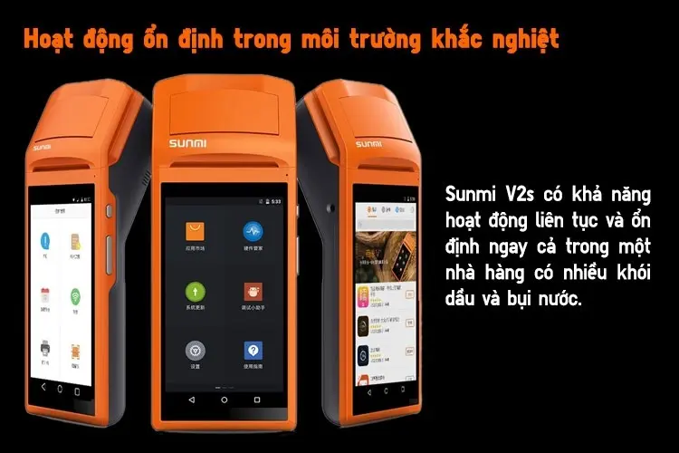 Sunmi V2s có khả năng hoạt động liên tục và ổn định ngay cả trong một nhà hàng có nhiều khói dầu và bụi nước.