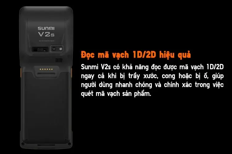 Sunmi V2s có khả năng đọc được mã vạch 1D/2D ngay cả khi bị trầy xước, cong hoặc bị ố, giúp người dùng nhanh chóng và chính xác trong việc quét mã vạch sản phẩm.