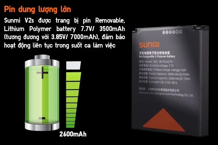 Sunmi V2s được nâng cấp với bộ nhớ ROM 16GB và RAM 2GB, giúp người dùng lưu trữ và xử lý dữ liệu nhanh chóng và hiệu quả.